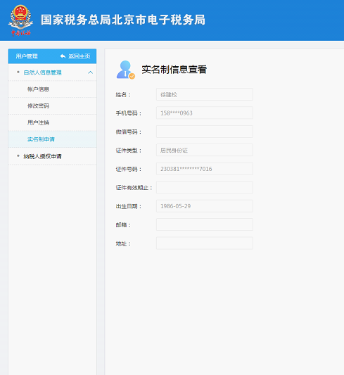 9.? 納稅人關(guān)聯(lián)成功后,可進(jìn)行實名制信息的查看。