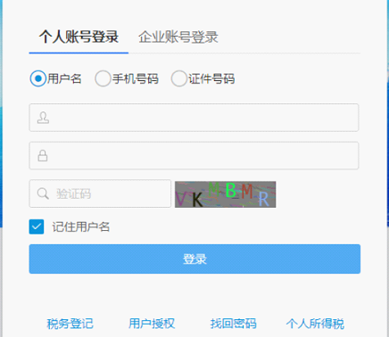 4.? 納稅人選擇個人賬號登錄-用戶名登錄方式,輸入用戶名密碼,點擊“登錄”按鈕,進(jìn)入實名申請頁面。