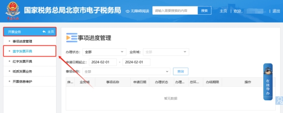 1.請(qǐng)依次點(diǎn)擊【我要辦稅】—【開票業(yè)務(wù)】—【藍(lán)字發(fā)票開具】—【立即開票】進(jìn)入開票界面,在“項(xiàng)目名稱”處輸入信息,系統(tǒng)通過智能匹配提供相似選項(xiàng)供選擇。