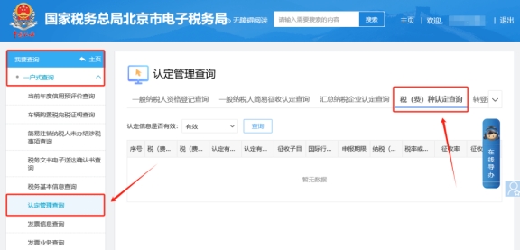 二、我要查詢—一戶式查詢—認(rèn)定管理查詢—稅(費(fèi))種認(rèn)定查詢模塊,將認(rèn)定信息是否有效選擇為“全部”后進(jìn)行查詢。