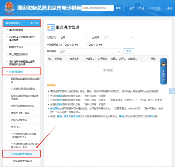 在電子稅務(wù)局上如何申請三代手續(xù)費?