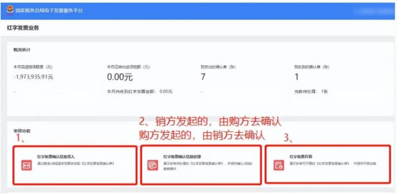 ① 受票方未進(jìn)行用途確認(rèn)時,由開票方通過電子發(fā)票服務(wù)平臺發(fā)起《紅字信息確認(rèn)單》后全額開具紅字?jǐn)?shù)電票,無需受票方確認(rèn);