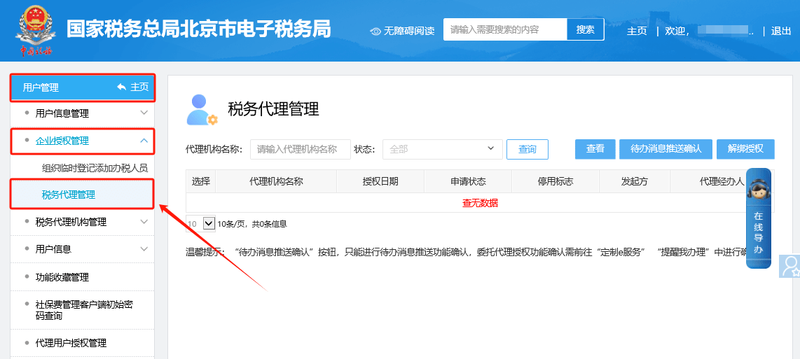二、用戶管理—企業(yè)授權(quán)管理—稅務(wù)代理管理進(jìn)行確認(rèn)。