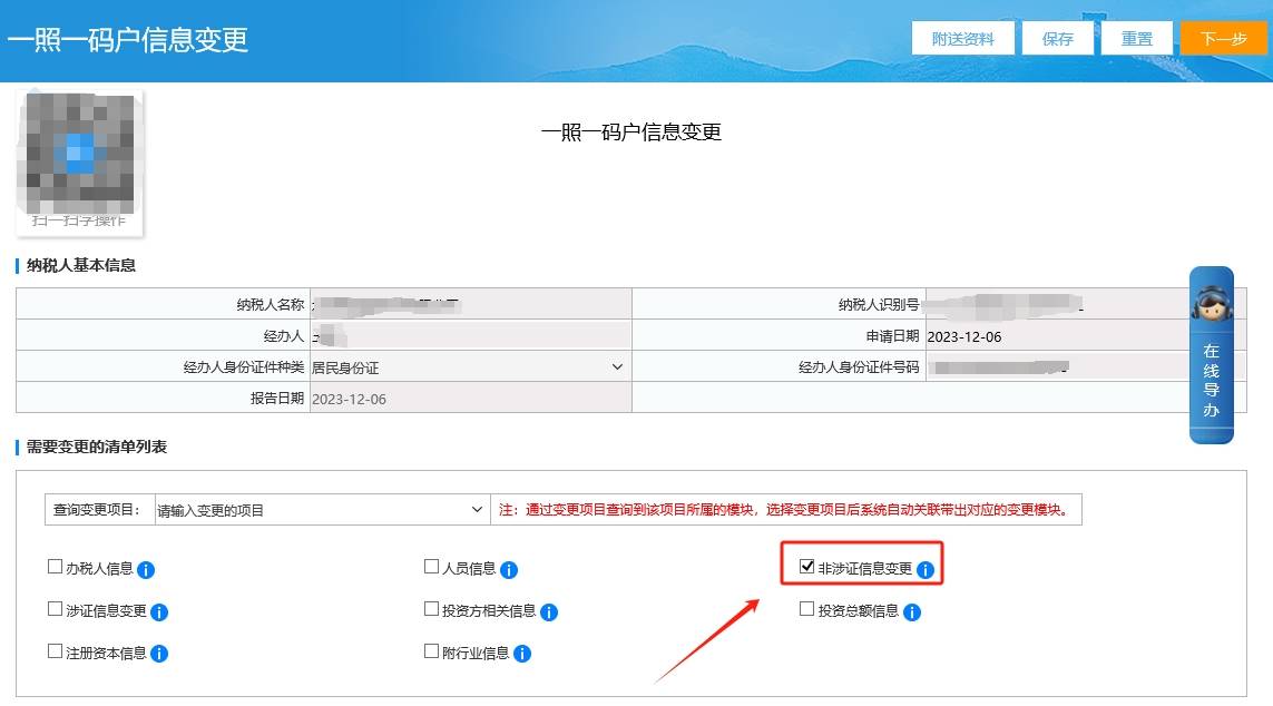 三、一照一碼戶信息變更選擇非涉證信息進(jìn)行修改。
