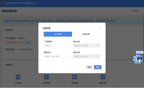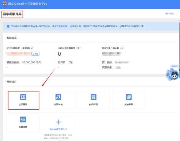 三、藍(lán)字發(fā)票開具一立即開票。