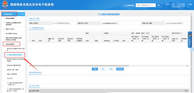 三、稅費申報及繳納—個人股東變動情況報告表(扣繳義務人)錄入。