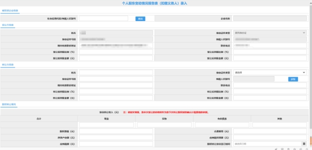 四、個人股東變動情況報告表(扣繳義務人)錄入頁面繼續(xù)填寫提交即可。