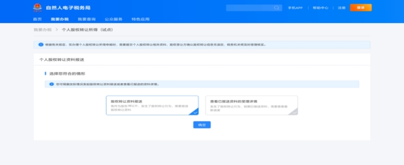 選擇“股權轉讓資料報送”,點擊“確定”。