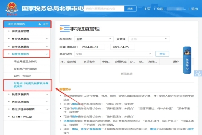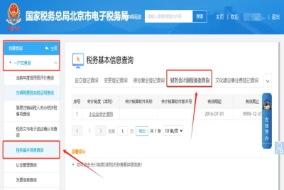 二、我要查詢—一戶式查詢—稅務(wù)基本信息查詢—財務(wù)會計制度備案查詢。