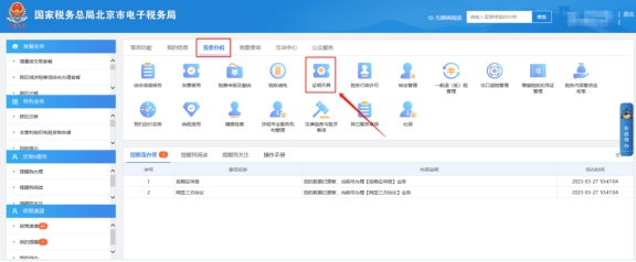 二、證明開具—開具稅收完稅證明(文書式)、開具稅收完稅證明(表格式)。