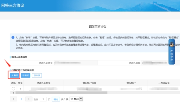 三、網(wǎng)簽三方協(xié)議頁面,點擊新增按鈕。