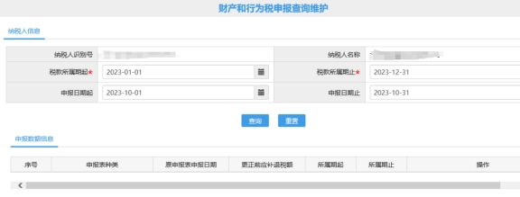 三、財產(chǎn)和行為稅申報查詢維護(hù)。