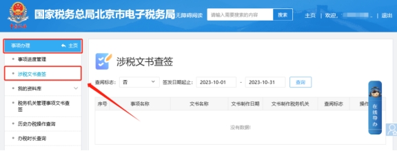 二、事項辦理—涉稅文書查簽,選擇對應(yīng)的事項名稱,下載打印之后去所選銀行辦理簽約業(yè)務(wù)。