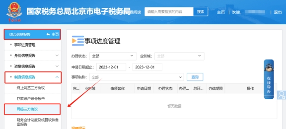 二、綜合信息報(bào)告—制度信息報(bào)告—網(wǎng)簽三方協(xié)議。