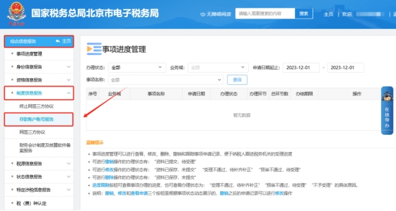 二、綜合信息報(bào)告—制度信息報(bào)告—存款賬戶賬號(hào)報(bào)告。