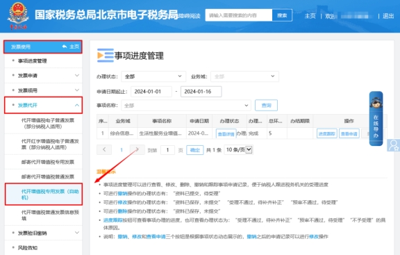 在電子稅務局上如何打印代開增值稅專用發(fā)票(自助機)的清單?