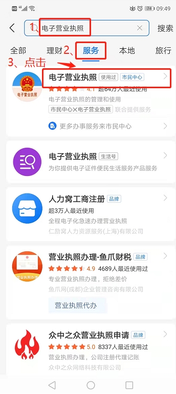 首先確保在使用的微信或和支付寶已經(jīng)實(shí)名認(rèn)證完成,在微信或者支付寶搜索欄里面輸入“電子營業(yè)執(zhí)照”六個(gè)字,微信會(huì)在“小程序”里面顯示(支付寶會(huì)在“服務(wù)”顯示),點(diǎn)擊一下對(duì)應(yīng)的小程序(或者服務(wù)),進(jìn)入程序界面。